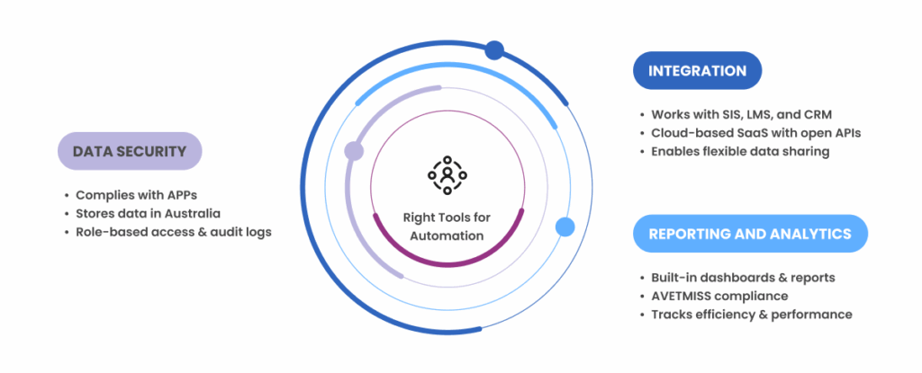 Ensure that your automation tools comply with Australian education standards and privacy laws particularly the Australian Privacy Principles (APPs). Choose providers that store sensitive data within Australia, provide detailed audit logs, and offer role-based access controls. This protects student data and demonstrates accountability to regulators.